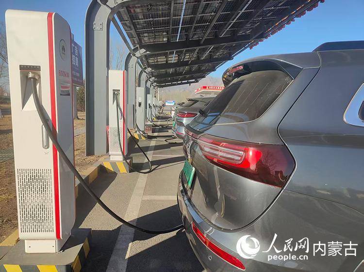 春节期间,服务区有序充电的新能源车辆。自治区交通运输厅供图